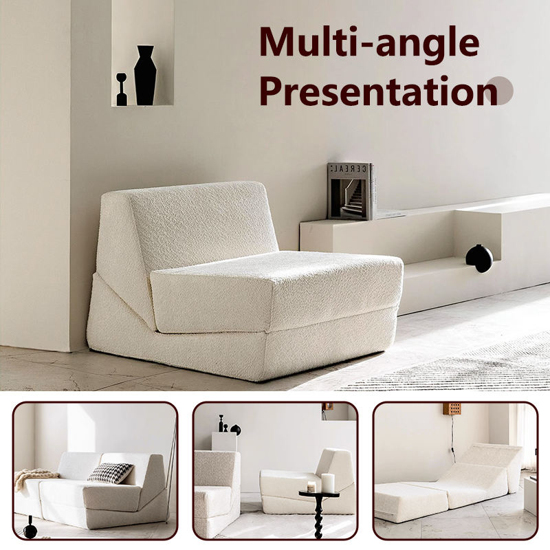 - 3-in-1 Versatility: Freely foldable and convertible, switching between single sofa, chaise lounge, and sofa bed to suit relaxation and napping scenarios.