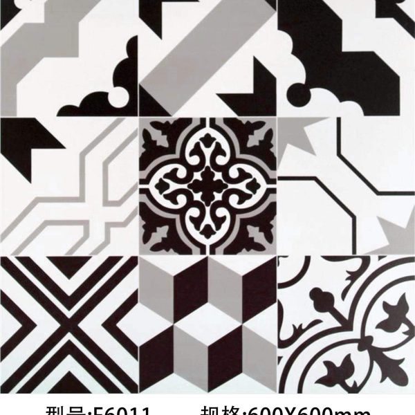 600x600mm Black White Geometric Patchwork Tiles, 3 Designs, Minimalist Floor Tiles for Living Room
