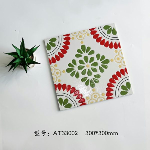 300×300mm Embossed Glossy Retro Tiles, Ethnic Geometric Mosaic Floor Tiles AT33006-AT33009