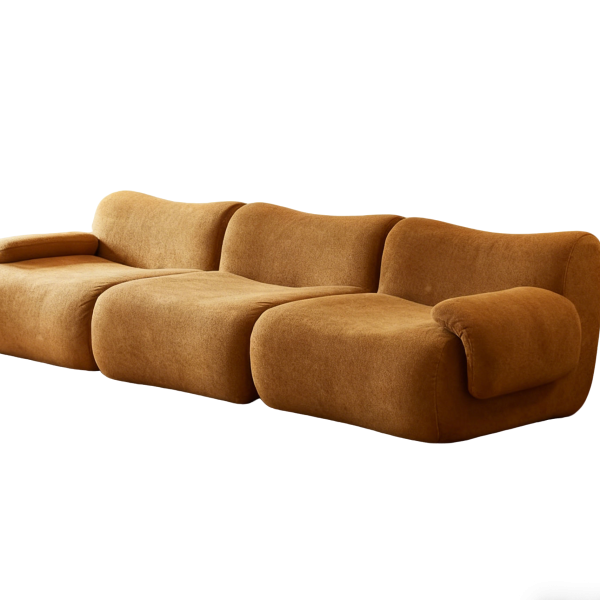 H-030# Curved Modular Fabric Sofa | Skin-Friendly Teddy Fleece High-Resilience Sponge Filling