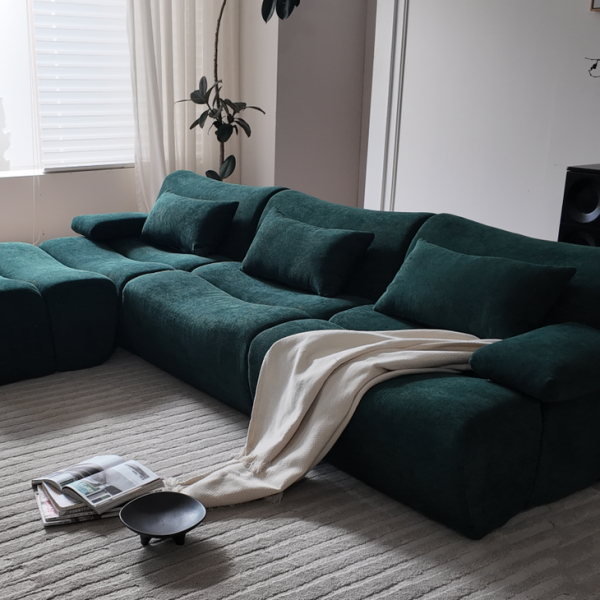H-031# Retro Dark Green Flannel Modular Sofa Lazy Style Large Space Combination Sofa