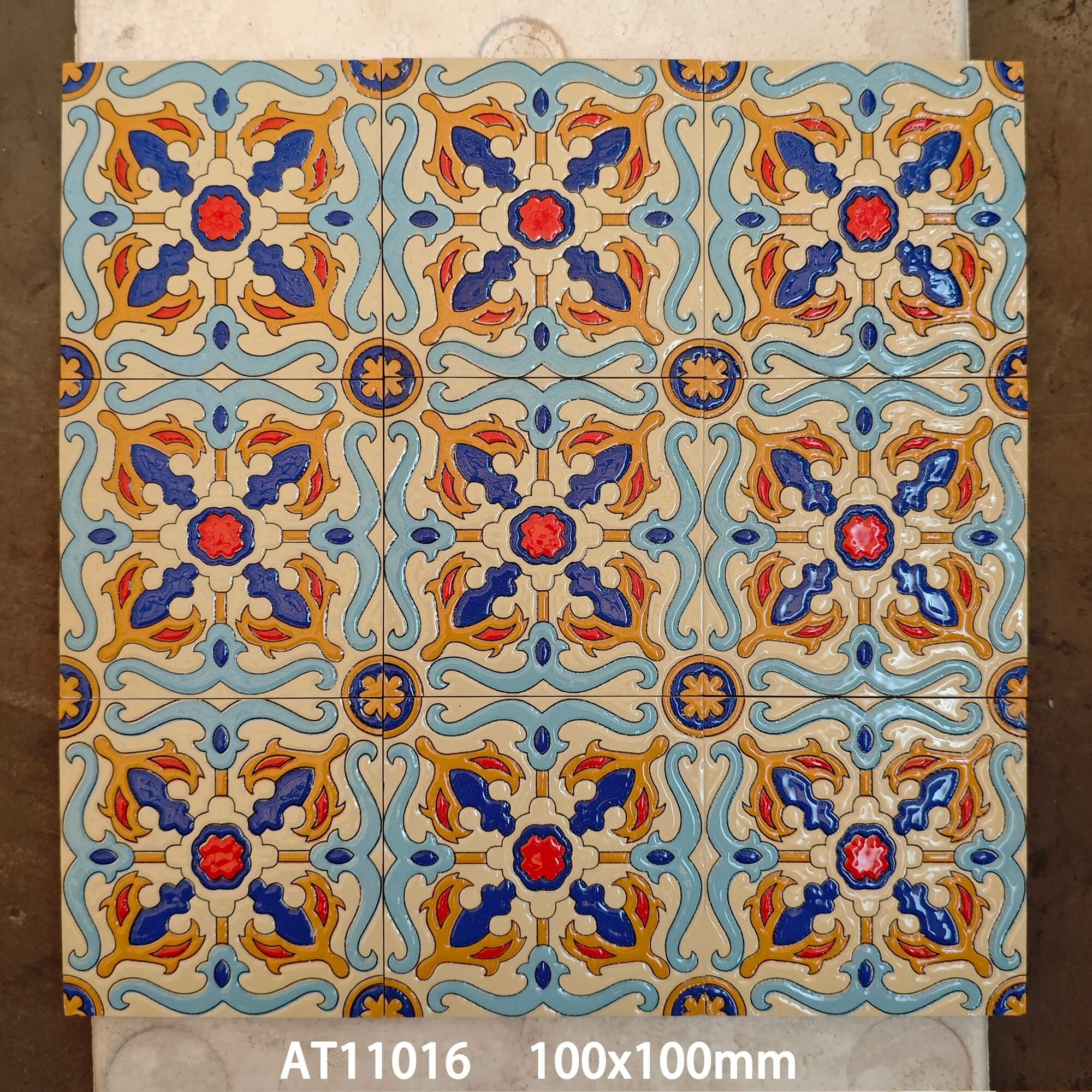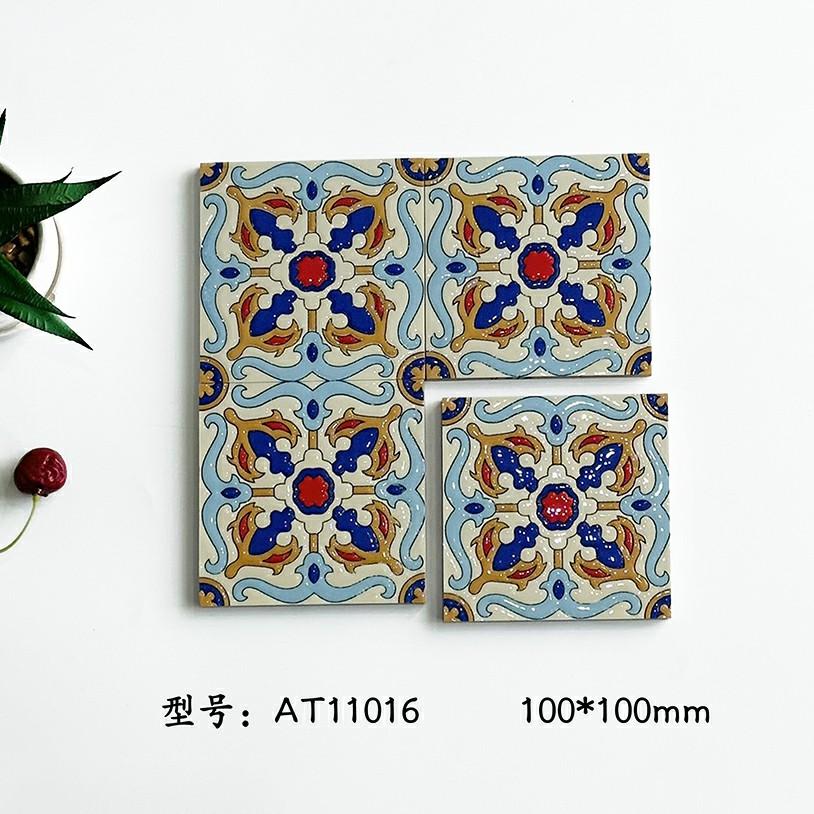 100x100mm Colorful Mosaic Ceramic Tiles, Wall Decor Tiles for Entryway and Balcony AT11013-AT11016