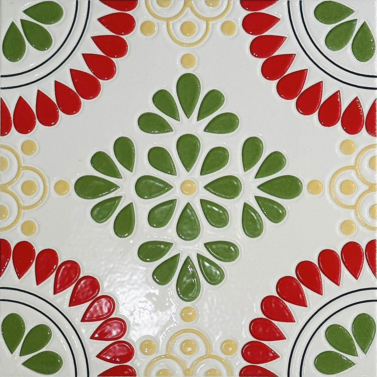 This series of tiles draws inspiration from retro ethnic patterns, with four distinct designs featuring floral vines, geometric totems, and exotic motifs. The rich, vibrant colors and layered details are enhanced by an embossed glossy finish, creating a strong three-dimensional effect that infuses any space with a rich, retro-exotic atmosphere.