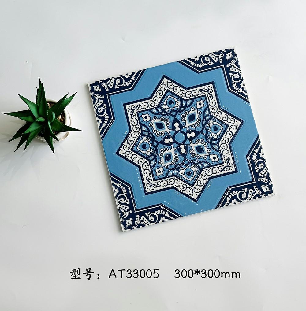 300×300mm Embossed Glossy Retro Ethnic Geometric Tiles, AT3300#