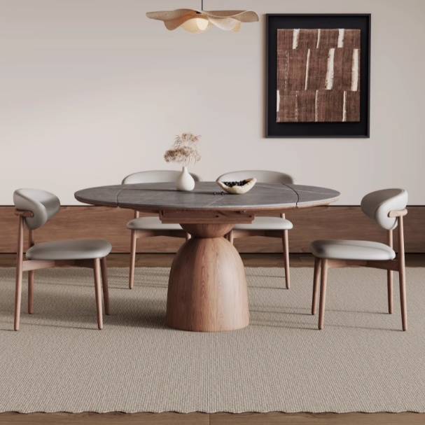 1. The design is inspired by mushrooms and highlights the rounded leg table, giving a strong and cute feeling. Paired with a stretchable jumping platform design, this compact dining table can instantly transform into a multi person dining mode, combining practicality and aesthetics.