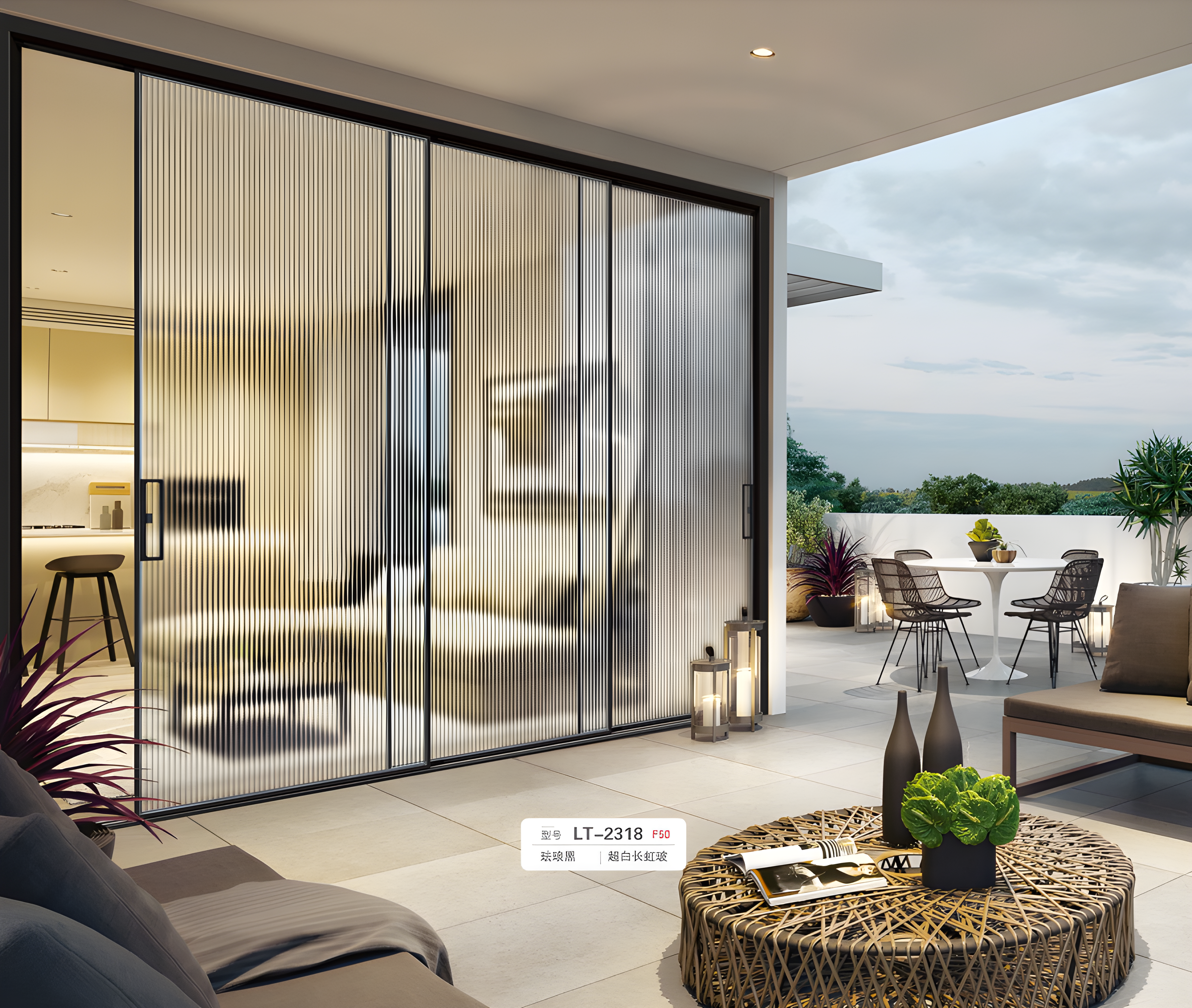 Extremely narrow sliding door, modern and minimalist kitchen balcony sliding door